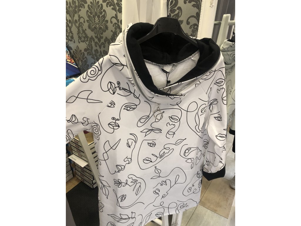 Barva: bílá s černou se stříbrným zipem
