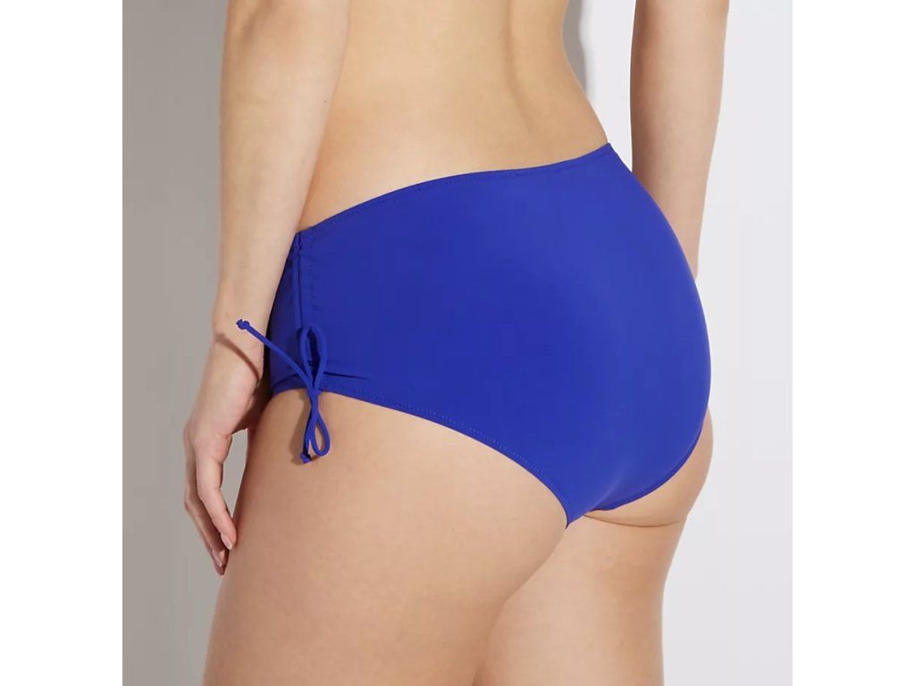 Pas a otvory pro nohy jsou ohraničeny úzkými krytými gumičkami pro bezpečné uchycení. Boky se dají nastavit pro vyšší otvor pro nohy pomocí stahovacích šňůrek. Bezešvý zadní díl. Vysoký pas. Středně zakrytý zadní díl.