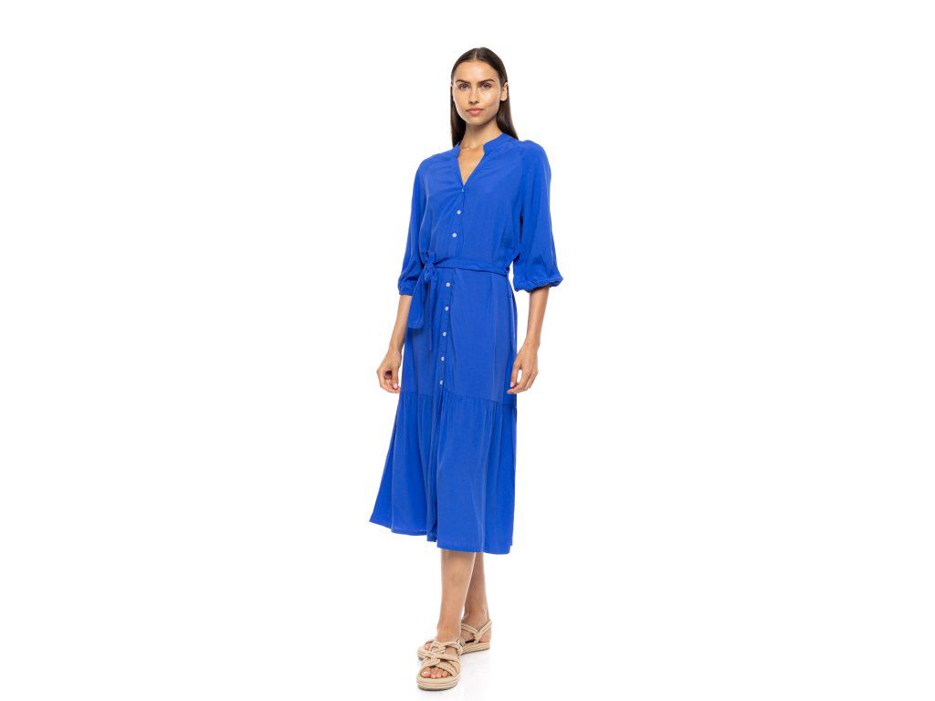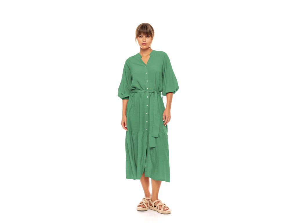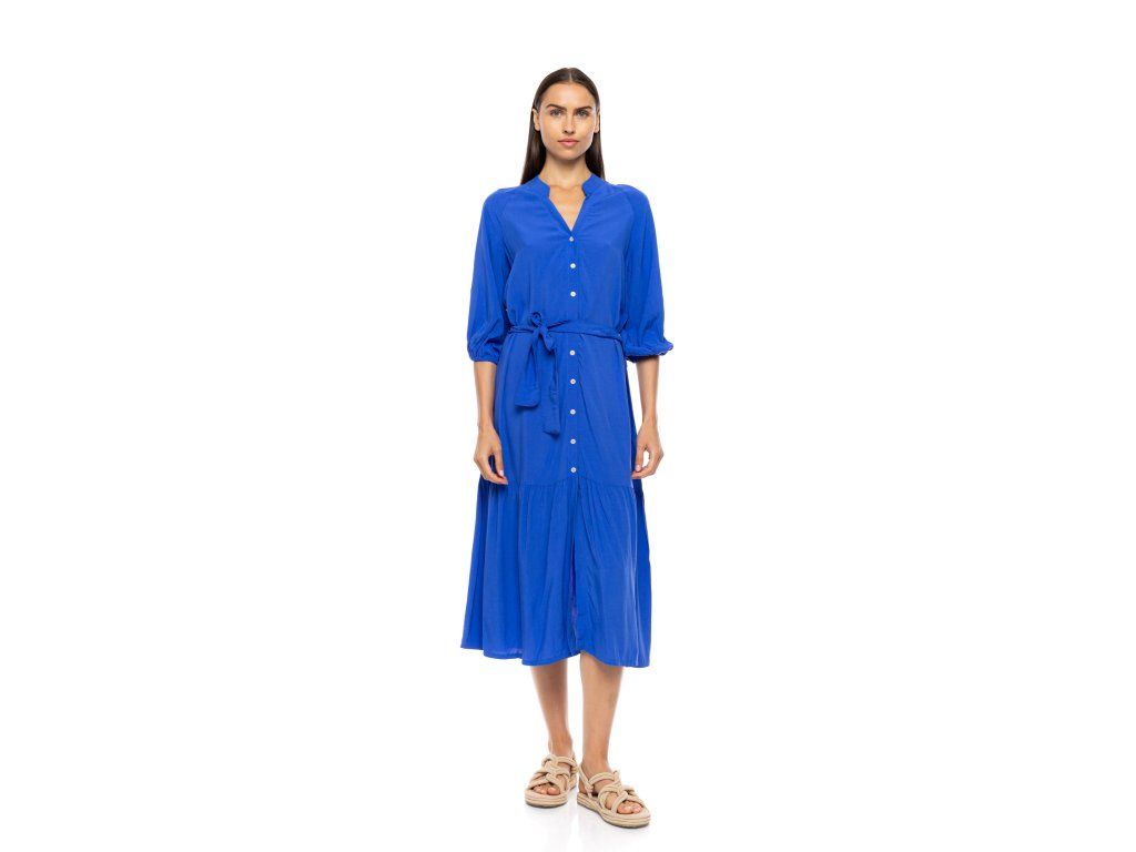 Velmi kvalitní letní šaty z řecka, 3/4 rukávy na gumu, propínací po celé délce, v pase na pásek, délka u velikosti M - 132 cm, přes prsa 54x2.